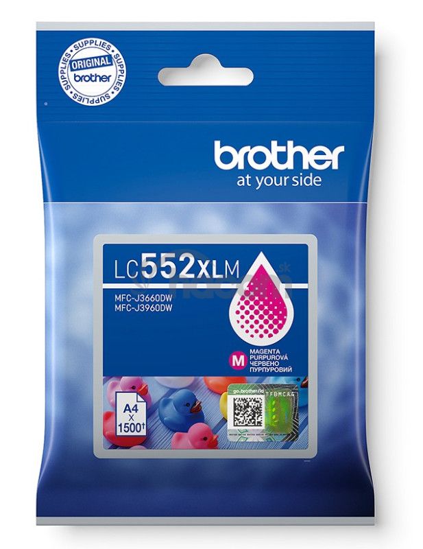 Brother Inkoustová Kazeta LC-552XLM - Purpurová XLVysoko kvalitný spotrebný materiál je nevyhnutný na dosiahnutie vynikajúcich výsledkov tlače. Vysokokapacitná purpurová prémiová pigmentová inkoustová kazeta Brother LC552XLM je navrhnutá tak, aby produkovala živé farby a ostrý text. Či už tlačíte prezentácie alebo dokumenty, zvyšuje celkovú kvalitu tlače.