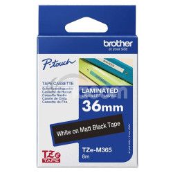 Originálna pásková kazeta pre tlač štítkov Brother TZe-M365 – matná laminovaná páska, biela tlač na matnom čiernom podklade, šírka 36 mmBrother TZe-M365 matná laminovaná páska, biela tlač na matnom čiernom podklade – šírka 36 mm