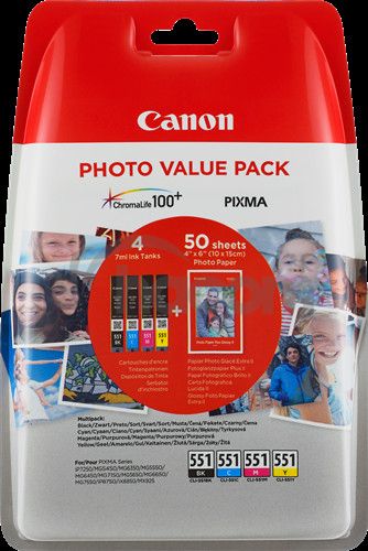 - Canon CLI-551 C / M / Y / BK + 50x PP-201 6508B005