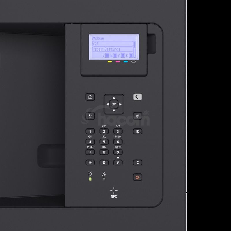 * Displej LCD s 5 riadkami, 5 indikátorov LED (Online, Ready, Message, Jób a Energy saver), tlačidlá, číselná klávesnica s 10 tlačidlami
