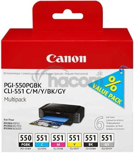 - Canon PGI-550 + CLI-551 C / M / Y / BK / GY Multi pack 6496B005