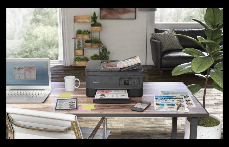 Tlačiareň PIXMA radu TS7450 je štýlová, cenovo dostupná a ľahko sa používa. Ponúka možnosť tlače na mnoho druhov kreatívnych médií z vášho počítača, tabletu alebo smartphonu. Vďaka technológii podávača ADF môžete naskenovať a skopírovať viac listov v polovičnom čase.• Skenujte alebo kopírujte 35 strán naraz