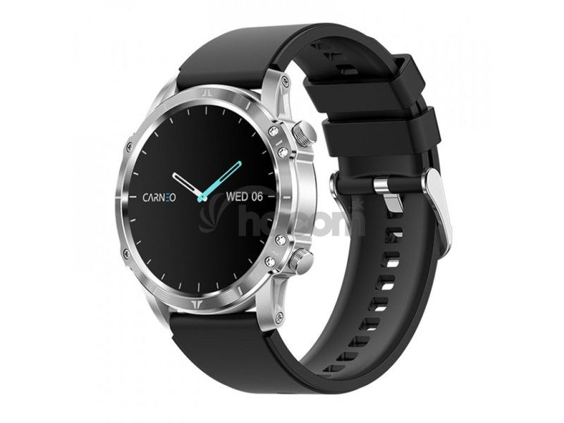 Všetky údaje o vašej aktiviteModerné outdoorové fitness inteligentné hodinky Carneo ADVENTURE HR+ druhej generácie v elegantnej striebornej farbe majú okrúhly farebný displej SUPER AMOLED chránený extrémne tvrdým sklom Gorilla. Umožňujú merať srdcový tep, stres, BMI, prejdenú vzdialenosť, sledovať spálené kalórie alebo kvalitu spánku. Obsahujú 380mAh batériu s výdržou až 5 dní. Podľa certifikácie IP67 sú odolné proti vode a prachu. Sú kompatibilné s operačnými systémami iOS a Android. Hodinky majú na dotyk príjemný silikónový remienok v čiernej farbe, ktorý je možné vymeniť za remienok v inej farbe alebo kožený či kovový a zmeniť tak športový vzhľad hodiniek za manažérsky. Vkusný outdoorovo-luxusný dizajn sa dá ľahko kombinovať s oblekom alebo voľnočasovým oblečením. Hodinky aj aplikácie sú kompletne v češtine, takže si s nimi určite dobre porozumiete.