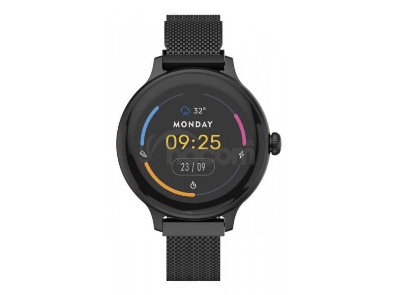 Všetky dáta vašej aktivityModerné fitness smart hodinky Carneo HERO mini HR+ v elegantnom čiernom prevedení disponujú okrúhlym Super HD AMOLED farebným displejom. Umožňujú meranie srdcového tepu, stresu, BMI, ušlé vzdialenosti, monitorovanie spálených kalórií či kvality spánku. Ich súčasťou je 230mAh batéria s výdržou 3 až 4 dni. Podľa certifikácie IP67 sú odolné voči vode a prachu. Sú kompatibilné s operačným systémom iOS a Android. Hodinky majú luxusný Milánsky, kovový remienok v zlatomružovej farbe, ktorý je možné vymeniť za silikónový remienok v inej farbe či kožený a tým pádom zmeniť hodinkám manažérsky vzhľad za športový. Vkusný, jednoduchý a luxusný dizajn sa ľahko kombinuje k obleku alebo voľnočasovému outfitu. Hodinky aj aplikácie sú kompletne v češtine, takže si budete určite spolu dobre rozumieť. Súčasťou balenia je aj silikónový, čierny remienok.
