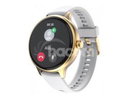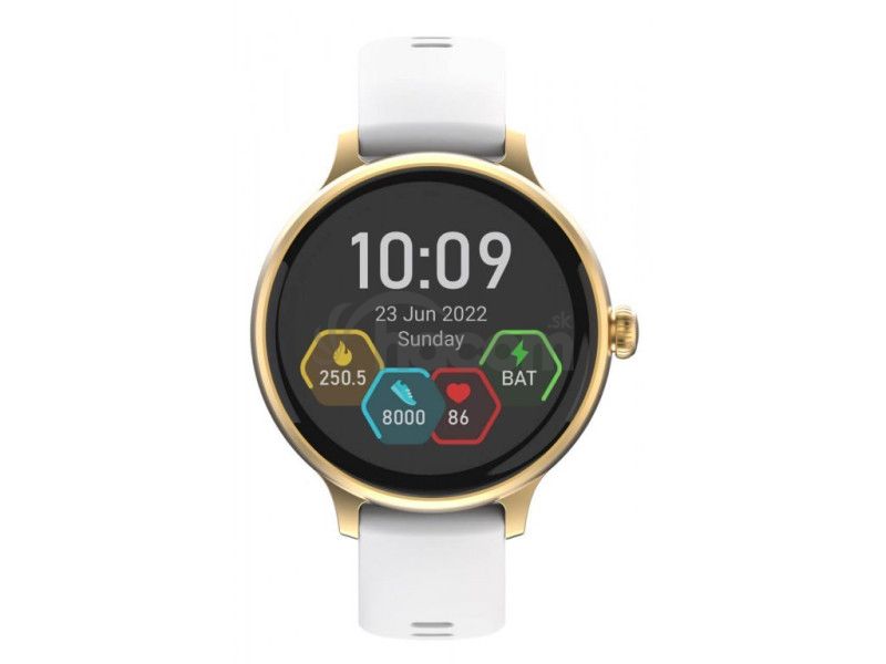 Všetky dáta vašej aktivityModerné fitness smart hodinky Carneo HERO mini HR+ v elegantnom zlatom prevedení disponujú okrúhlym Super HD AMOLED farebným displejom. Umožňujú meranie srdcového tepu, stresu, BMI, ušlé vzdialenosti, monitorovanie spálených kalórií či kvality spánku. Ich súčasťou je 230mAh batéria s výdržou 3 až 4 dni. Podľa certifikácie IP67 sú odolné voči vode a prachu. Sú kompatibilné s operačným systémom iOS a Android. Hodinky majú luxusný Milánsky, kovový remienok v rýdzo zlatej farbe, ktorý je možné vymeniť za silikónový remienok v inej farbe či kožený a tým pádom zmeniť hodinkám manažérsky vzhľad za športový. Vkusný, jednoduchý a luxusný dizajn sa ľahko kombinuje k obleku alebo voľnočasovému outfitu. Hodinky aj aplikácie sú kompletne v češtine, takže si budete určite spolu dobre rozumieť. Súčasťou balenia je aj silikónový, biely remienok.