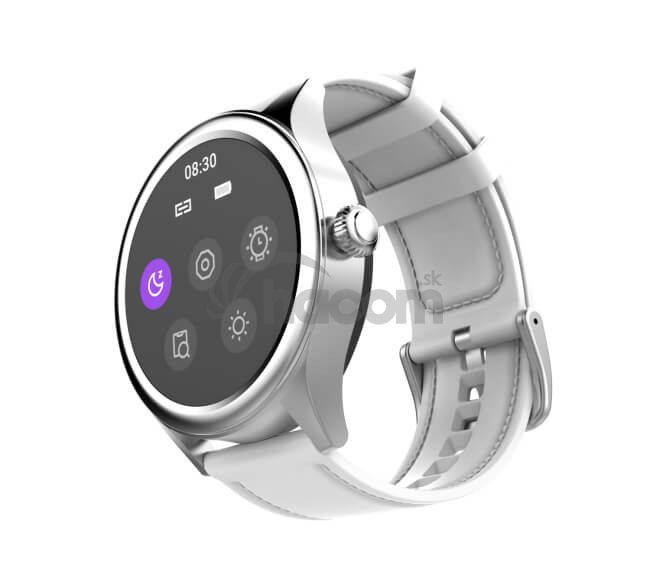 Smart hodinky Carneo Prime GTR v elegantnom striebornom prevedení, farebným dotykovým displejom je možné aktivovať jednoduchým otočením ruky. Okrem bežných „smart“ funkcií disponujú aj fitness športovými funkciami a to všetko v elegantnom business look prevedení. Biely silikónový remienok v dizajne koženého remienka s prešívaním umocňuje ich eleganciu.