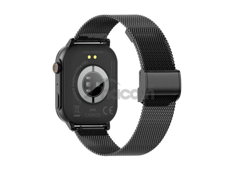 Moderné, designovo prepracované fitness hodinky CARNEO Zephyr Ultra HR+ v čiernej farbe s čiernym, kovovým, pleteným remienkom a farebným SUPER AMOLED displejom s vysokým jasom a funkciou trvalého zobrazenia času. Monitorujú vašu dennú aktivitu, úroveň stresu a je možné ich spárovať s mobilným telefónom vďaka čomu Vás upozorní na prichádzajúci hovor alebo SMS. Hodinky umožňujú telefonovať bez toho, aby ste museli telefón vybrať z tašky, vďaka vstavanému mikrofónu a reproduktoru až do vzdialenosti 10 m od telefónu. Ich bezchybné kovové telo s nadčasovými outdoorovými krivkami je tak návykové, že ich po prvom nosení nebudete chcieť zložiť zo zápästia. Tvrdené minerálne sklo ochráni ich krištáľovo čistú obrazovku pred poškriabaním.Hodinky sú dodávané so silikónovým remienkom v čiernej farbe príjemným na dotyk, ktorý im dodáva športový vzhľad. Vkusný outdoorovo-luxusný dizajn sa ľahko kombinuje k obleku alebo voľnočasovému outfitu. Hodinky aj aplikácie sú kompletne v češtine, takže si budete určite spolu dobre rozumieť.