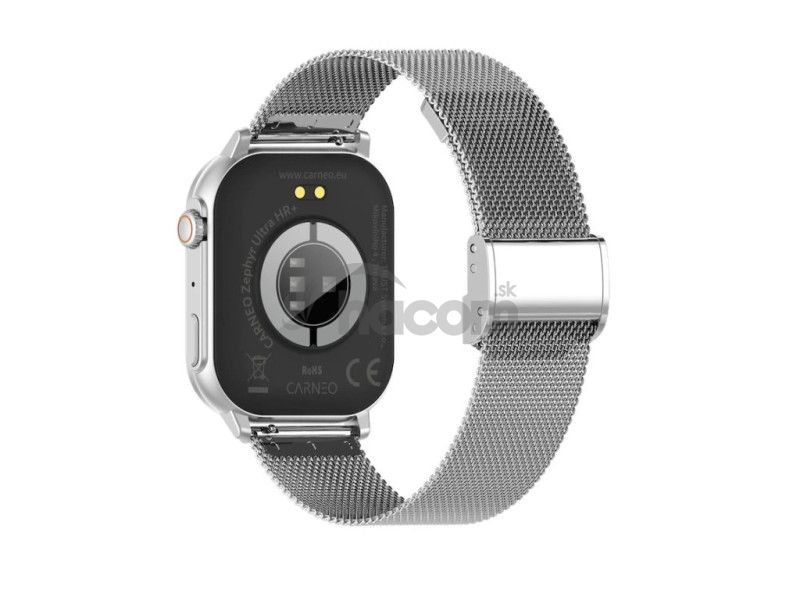 Moderné, designovo prepracované fitness hodinky CARNEO Zephyr Ultra HR+ v striebornej farbe so strieborným, kovovým, pleteným remienkom a farebným SUPER AMOLED displejom s vysokým jasom a funkciou trvalého zobrazenia času. Monitorujú vašu dennú aktivitu, úroveň stresu a je možné ich spárovať s mobilným telefónom vďaka čomu Vás upozorní na prichádzajúci hovor alebo textovú správu. Hodinky umožňujú telefonovať bez toho, aby ste museli telefón vybrať z tašky, vďaka vstavanému mikrofónu a reproduktoru až do vzdialenosti 10 m od telefónu. Ich bezchybné kovové telo s nadčasovými outdoorovými krivkami je tak návykové, že ich po prvom nosení nebudete chcieť zložiť zo zápästia. Tvrdené minerálne sklo ochráni ich krištáľovo čistú obrazovku pred poškriabaním.Hodinky sú dodávané so silikónovým remienkom v šedej farbe príjemným na dotyk, ktorý im dodáva športový vzhľad. Vkusný outdoorovo-luxusný dizajn sa ľahko kombinuje k obleku alebo voľnočasovému outfitu. Hodinky aj aplikácie sú kompletne v češtine, takže si budete určite spolu dobre rozumieť.