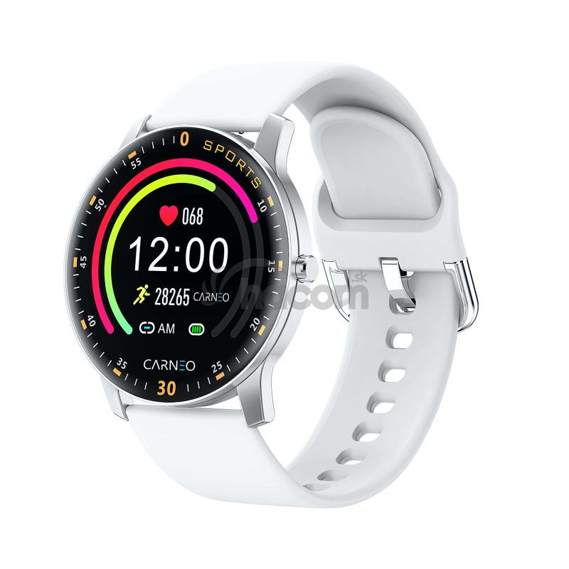 Moderné fitness náramok Carneo Gear + Platinum žena v elegantnom ružovom prevedení disponuje OLED farebným displejom, ktorý možno aktivovať jednoduchým otočením ruky. Umožňuje merania srdcového tepu, prejdenej vzdialenosti, monitorovanie spálených kalórií či kvality spánku. Jeho súčasťou je batéria s výdržou cca 7 dní. Podľa certifikácia IP67 je odolný voči vode a prachu. Náramok s podporou technológie Bluetooth je kompatibilný s operačným systémom iOS a Android. Silikónový náramok s kovovou prackou je príjemný na dotyk a zaručuje komfort počas celého dňa.