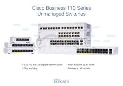 Teraz môžete mať vysoko výkonnú sieť podnikovej triedy s Cisco Business 110 Series Unamnaged Switches. Tieto cenovo dostupné prepínače typu plug-and-play sú ideálne pre malé kancelárie, pracovné skupiny, oddelenia a rastúce kancelárie s obmedzeným IT know-how a podporou. Poskytujú robustný sieťové pripojenie, ktoré spĺňajú vaše obchodné požiadavky, a tiež pridanú spoľahlivosť s pokročilými funkciami, ako je kvalita služby (QoS), detekcia slučky a diagnostika káblov, to všetko v prepínači, ktorý si môžete nastaviť sami behom niekoľkých minút. Prepínače radu Cisco Business 110 prinášajú vašej malej firme osvedčenú spoľahlivosť a ochranu investícií sieťových riešení Cisco.technické parametre