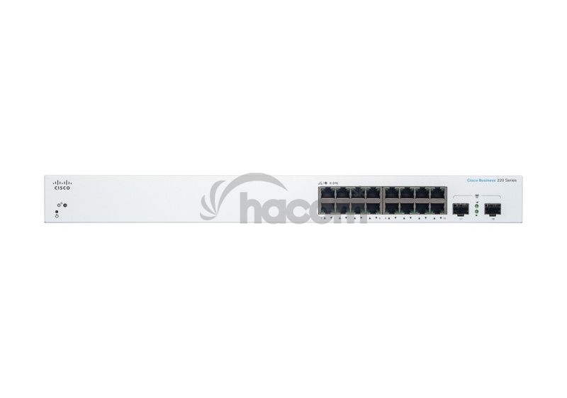 CBS220-16T-2G - Cisco Business 220 Ethernet SwitchRad Cisco Business 220 sú cenovo dostupné inteligentné prepínače s jednoduchým použitím, zabezpečením a spoľahlivosťou pre siete podnikovej triedy. Vďaka intuitívnemu palubnému panelu, možnostiam napájanie cez Ethernet (PoE) a prispôsobiteľným funkciám poskytujú tieto prepínače spoľahlivú obchodnú sieť v rámci vašich rozpočtových parametrov. Ak potrebujete sieť na špičkovej úrovni a cena je najvyššou prioritou, ponúka rada Cisco Business 220 vynikajúce riešenie.