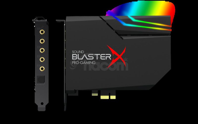 SOUND BLASTERX AE-5 PLUS herná zvuková karta PCI-e s vysokým rozlíšením a prevodník DAC s osvetlením RGB, funkciou Dolby Digital Live a kódovaním DTS. Sound BlasterX AE-5 Plus predstavuje ideálne prepojenie estetiky a výkonu zahŕňajúce hernú zvukovú kartu PCI-e s vysokým rozlíšením ultra triedy SABRE32 a prevodník DAC s nastaviteľnými RGB LED diódami na tele, súčasťou výbavy je RGB LED pásik. Ponúka tiež oceňovaný diskrétny zosilňovač slúchadiel Xamp, ktorý využíva technológiu dvojitého zosilnenia, a taktiež celý rad našich popredných technológií spracovania zvuku vrátane virtualizácie priestorového zvuku.Zvuková karta Sound BlasterX AE-5 Plus je zároveň prevodníkom DAC PCI-e triedy SABRE, ktorý sa ideálne hodí na reprodukovanie herného, hudobného a filmového zvuku s vysokým rozlíšením. Poskytuje extrémne čistý 122dB DNR audio stream s prehrávaním do 32bitov/384 kHz s ultra nízkym skreslením a fluktuáciami.