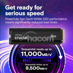 Crucial P510 2TB PCIe Gen5 NVMe 2280 M.2 SSD with heatsinkVyužite výkon technológie NVMe s vysokorýchlostným SSD Crucial P510