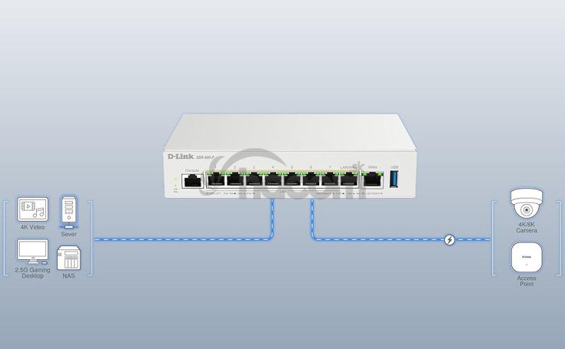 DBR-600-P ponúka vysoko výkonné sieťové pripojenie s 2,5GE WAN portom a ôsmimi 2,5GE PoE portami pre rýchle a spolehlivé pripojenie.