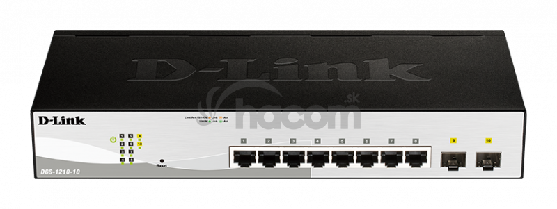 - D-Link DGS-1210-10 L2 / L3 Smart + Switch, 8x GbE, 2 SFP, fanless DGS-1210-10