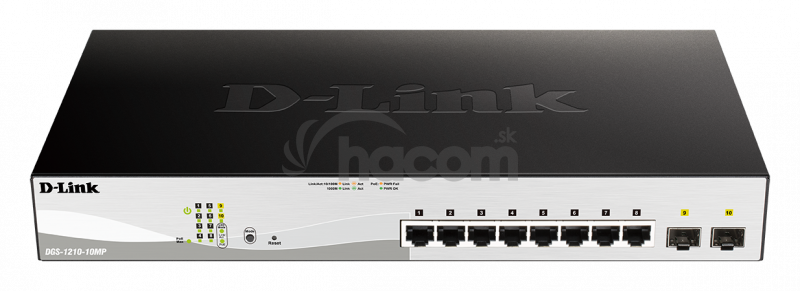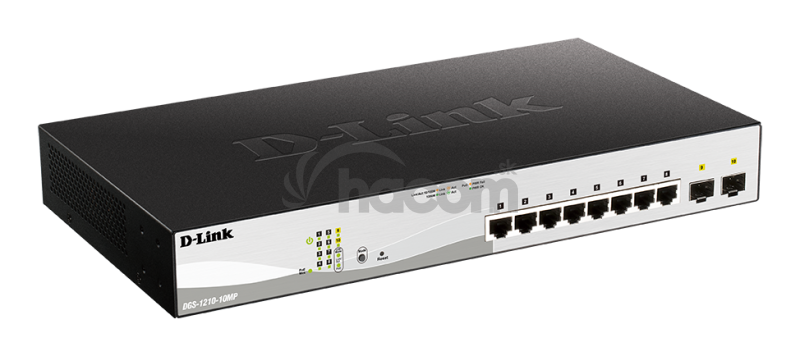 - D-Link DGS-1210-10MP L2 / L3 Smart + PoE switch, 8x GbE PoE +, 2x SFP, PoE 130W, fanless DGS-1210-10MP