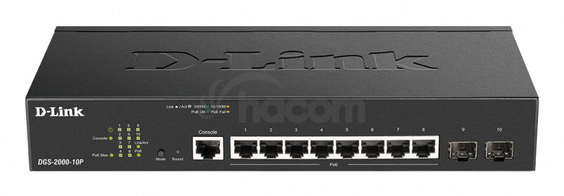 D-Link DGS-2000-10P Managed PoE switch, 8x GbE PoE +, 2x SFP, PoE 65W, fanless DGS-2000-10P
