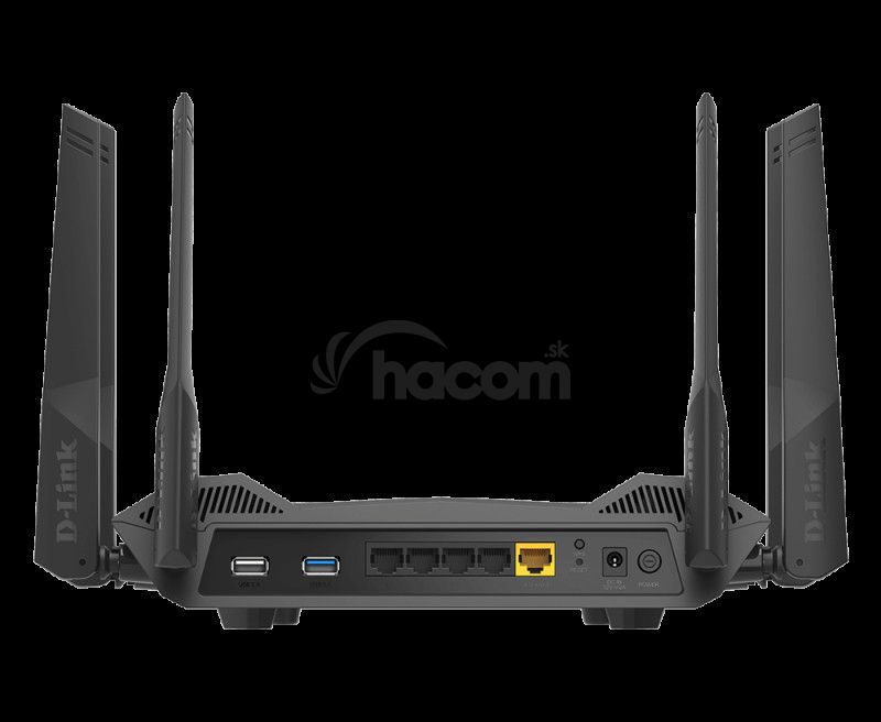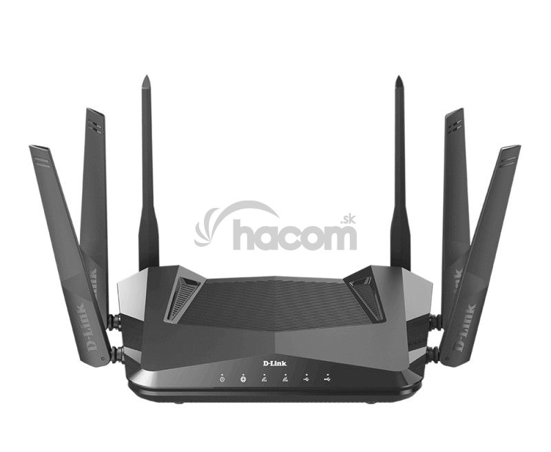 Router D-Link EXO AX AX5400 Wi-Fi 6 DIR-X5460. Budúcnosť je nezastaviteľná, vaša Wi-Fi by mala byť tiež. Wi-Fi 6 prináša do vašej domácnosti technológiu Wi-Fi novej generácie, čo spôsobuje obrovský skok v kapacite, rýchlosti a dosahu, ktorý potrebujete na splnenie všetkých vašich požiadaviek na Wi-Fi. Perfektné pre vysoko výkonné inteligentné domácnosti plné zariadenie.Zažite až rýchlosti AX5400, zatiaľ čo 1024-QAM zvyšuje priepustnosť zariadení až o 25% a susedné šírka kanála 160 MHz poskytuje ešte väčšiu šírku pásma. Až 6 súčasných streamov vám umožní vychutnať si rýchlejšie a príjemnejšie streamovanie v rozlíšení 4K, online hranie a ďalšie, a ak ich budete potrebovať - 4 gigabitové LAN porty a 1 gigabitový WAN port vám poskytnú rýchlejší káblové pripojenie, kedykoľvek budete chcieť.