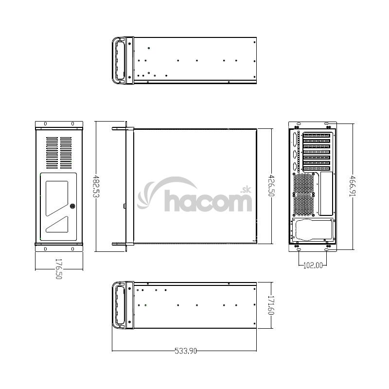 - case vrátane úchytov 178 x 488 x 535 mm (V x Š x H)
