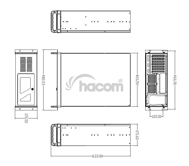 *case vrátane úchytov 178 x 488 x 635 mm (V x Š x H)