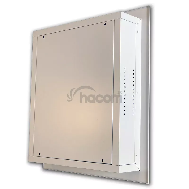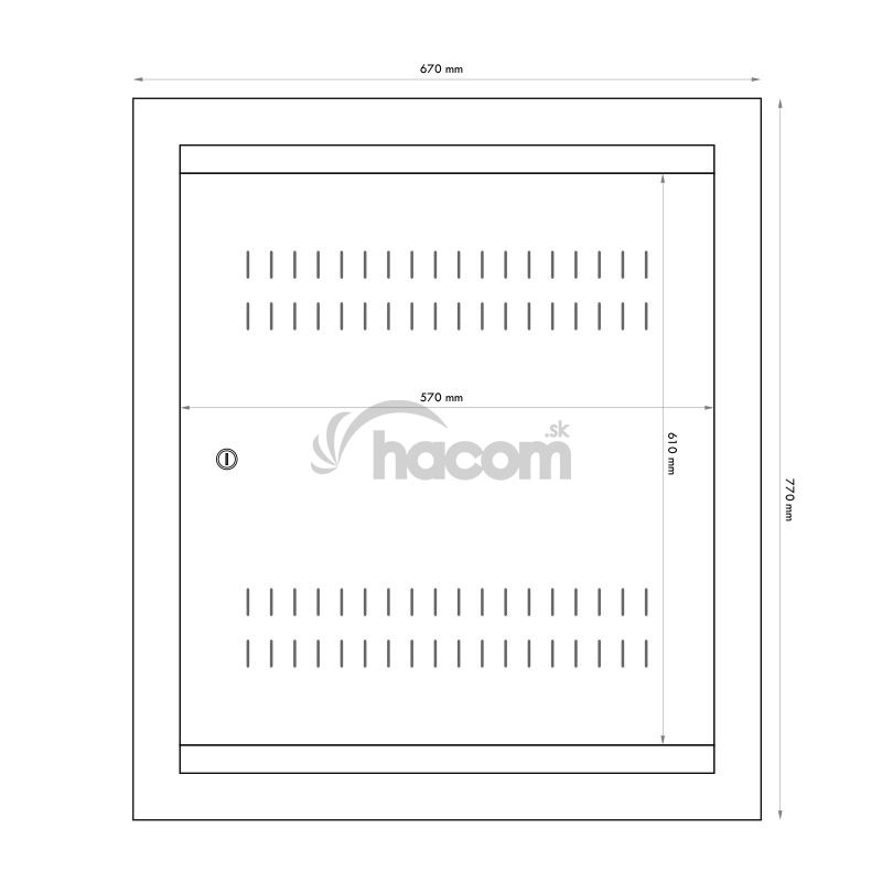Datacom 19 "rozvádzač pod omietku 4U + 2U / 150mm (plech) Nástenná rozvodová dátová skriňa 4U vodorovne + 2U zvisle je vyrábaná iba v jednej rozmerové variante s rozmermi: vonkajšia výška s rámom (bez rámu): 770 mm (670 mm) vonkajšia šírka s rámom (bez rámu): 670 mm (570 mm) vonkajšia hĺbka s rámom (bez rámu): 150 mm (150 mm) Polohovateľné uchytenie líšt: - Vertikálne lišta 4U (pre umiestnenie komponentov vo vodorovnej polohe): 110 mm od vertikálnej lišty 4U k zadnej stene rozvádzača, vertikálne lišty možno premiestniť kdekoľvek v celej výške rozvádzača. - Horizontálne lišta 2U (pre umiestnenie komponentov vo zvislej polohe): 350 mm (+ -80mm) od horizontálnej lišty 2U ku dnu rozvádzače !!! Zmena polohy horizontálne lišty 2U je možná iba pred zaomietaním rozvádzača !!! - Táto dátová skriňa je určená ako rozvádzač pre inštaláciu prvkov štruktúrovaných kabeláží a prvkov telekomunikačných rozvodov. vlastnosti: - vlastné odvetrávacie otvory vo dverách rozvádzača - skriňa tvorená zváraným skeletom, polohovateľné pozície vertikálnych líšt Upozornenie: zvislo umiestnené vertikálne lišty 2U možno polohovať len pred zabudovaním rozvádzače - z čelnej strany je rozvádzač osadený plechovými perforovanými dverami s dvoma pántmi - ľahko nastaviteľné ľavé / pravé otváranie - kovový zámok na kľúč s jednobodovým zamykaním - v zadnej časti sú 4 otvory pre prípadné uchytenie na v SDK stene / rozteč 10mm otvorov - 58,5mm x 400mm / - horné a spodné vylamovacie priechody pre kabeláž / 260x50mm / - pred inštaláciou do steny možné odmontovať chrbát rozvádzače (rozmer odnímateľných chrbta 610x500mm), získate tým väčšiu hĺbku pre inštaláciu. - IP krytie: IP20 - povrchová úprava je prevedená práškovou technológiou - farba šedáParametre