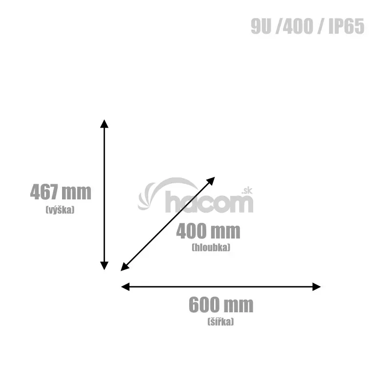 19 "vonkajšie (outdoor) rozvádzač 09U / 600x400 IP65ROZMERY
