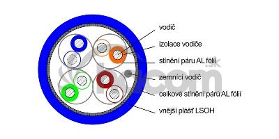 Inštalačný kábel kategórie 6A určený pre rozvody štruktúrovanej kabeláže. Vďaka dvojitému prevedenie tienenie kábla je vhodný pre umiestnenie do náročnejšieho vnútorného prostredia.- 4 x 2 x 0,56 z plnej medi