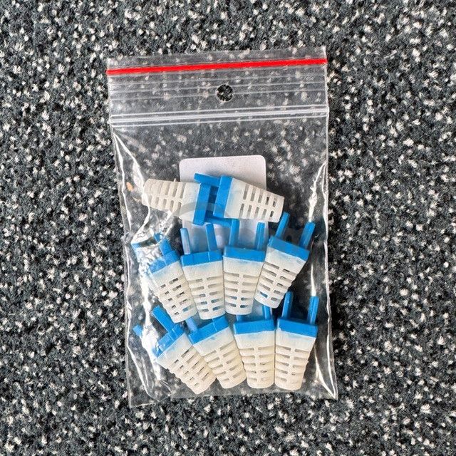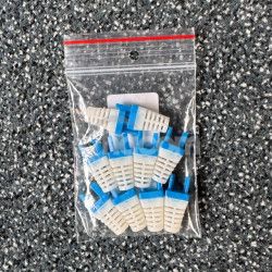 Manžetka pre RJ45 konektor (8p8c) - modrá / biela, 10 ksPlastová ochranná manžetka na profesionálne zakončenie sieťových káblov.