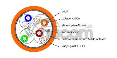 - tienené prevedenie S / FTP (Oplet celkovo, jednotlivé páry AL fóliou)