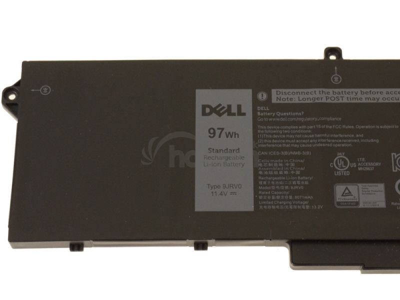Stále cestujete? Už si nemusíte robiť starosti s obmedzenou výdržou batérií! Svoj notebook môžete napájať touto 6-článkovou lítium-iónovou batériou Dell™. Vďaka kapacite až 97 Wh vám batéria umožní bezproblémovú prácu na služobných cestách aj na dovolenke. Táto batéria vám poskytne nepretržité a spoľahlivé napájanie, ktoré potrebujete pre čo najlepšie využívanie notebooku. Lítium-iónové batérie vydržia dlhšie ako bežné batérie a nevyžadujú tak častú výmenu. Tento produkt bol testovaný a overený v laboratóriách Dell. Ak ho použijete v notebooku Dell, vzťahuje sa naň technická podpora spoločnosti Dell.