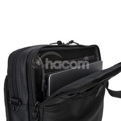 Pri nosení kufríka si uvoľnite ruky vďaka odnímateľnému a nastaviteľnému protiskluzovému polstrovanému ramennému popruhu. Keď je potrebné rýchlo vyraziť, tento ľahký kufrík môžete tiež uchopiť za polstrované rukoväte. Na dlhších cestách môžete kufrík upevniť k batožine s kolieskami za použitia prvku pre upevnenie ku kufríku na kolieskach.