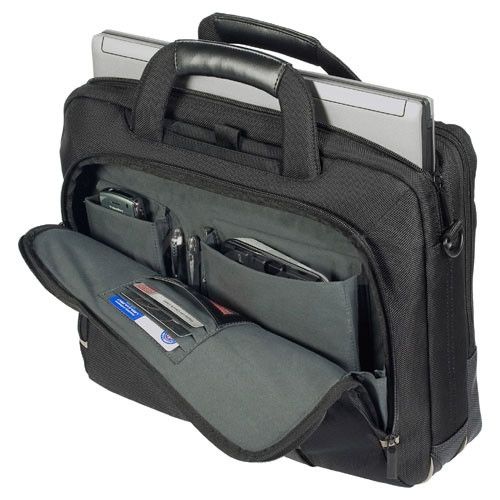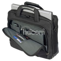Taška na notebook s otváraním hore Meridian II značky Targus® je univerzálny štýlová taška na cesty. Je určená pre notebooky s obrazovkami do veľkosti 39,62 cm (15,6 ''), ktoré počas ciest ochráni v tapacírovanom oddielu. Trvanlivý nylonový materiál so značkovou odolnou tkaninou na dne tašky je štýlovým dizajnovým prvkom a súčasne zvyšuje odolnosť proti nárazom. Predná časť obsahuje vrecko na mobilný telefón, slučky na perá, držiak vizitiek a niekoľko vreciek na príslušenstvo. Rozšíriteľný oddiel s zoraďovačom vám pomôže pri organizáciu dokumentov na cestách. Táto taška je vybavená pohodlným, nastaviteľným remeňom cez rameno s kovovými háčikmi a očkami. Prvotriedne mäkčená látka v celej brašni bráni poškodeniu cenných predmetov a dodáva pocit kvality. Taška Meridian II obsahuje patentovaný popruh SafePort chrániaci notebook pred poškodením pri páde. Štýlové otváranie hore obsahuje patentovaný uschovateľný držiak na fľaše Targus a uschovateľný držiak leteniek. Kožou obalené rukoväte sú zmagnetizované pre komfortné a pohodlné nosenie.Moderné čistá linka s nádhernými dizajnovými detailmi