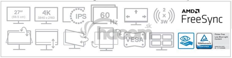 27" monitor s rozlíšením 4K UHD a inšpiráciou z bežného života, ktorý podporuje prehrávanie obsahu HDR a skvelú zábavu.Skvelý obraz: Dizajn s trojstranným veľmi tenkým rámčekom a rozlíšením 4K UHD (3 840 × 2 160) prináša pútavý, veľmi čistý obraz s jemnými detailmi v štvornásobnom rozlíšení oproti Full HD. Podporuje prehrávanie obsahu HDR a realistickejší vizuálny zážitok.