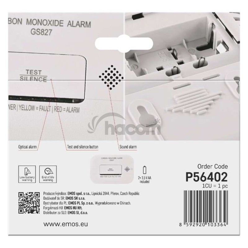 - Detektor oxidu uhoľnatého v miestnosti GS827 P56402