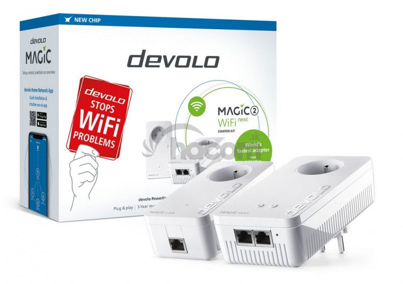 Devolo Magic - spoľahlivá domáca sieť vedená štandardným elektrickým rozvodomNajpopulárnejší formou sieťového rozvodu v domácnostiach i niektorých spoločnostiach je bezdrôtová sieť Wi-Fi. Na mnohých miestach sú však frekvencie využívané pre bezdrôtový rozvod zahltené alebo rušené. Následkom toho dochádza k spomaleniu alebo dokonca výpadkom plynulého toku dát, čo má za následok zastavovanie streamovaného videa alebo oneskorenia pri hraní hier. Systémy Devolo ponúka stabilné riešenie dátového rozvodu v dome, byte či kancelárii bez nutnosti zložitej káblovej inštalácie. K prepojeniu jednotlivých prístrojov a rozvedení internetového pripojenia využívajú štandardné elektrický rozvod. Stačí zapojiť jednotlivé komponenty do zásuvky ak dispozícii je rýchle internetové aj dátové prepojenie všetkých prístrojov.