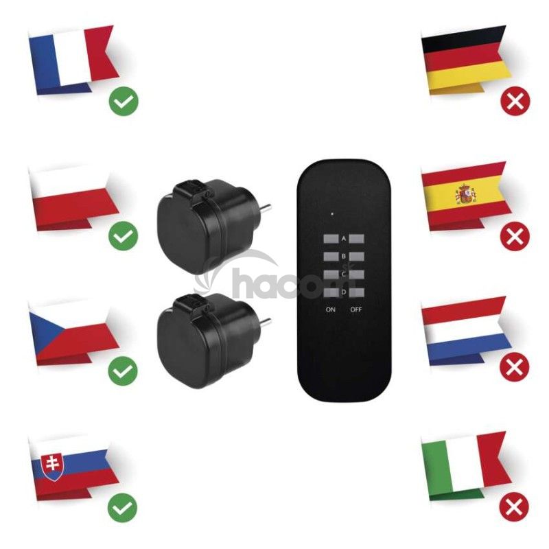 | produkt | diaľkovo ovládané zásuvky, 2 zásuvky + 1 × diaľkový ovládač |