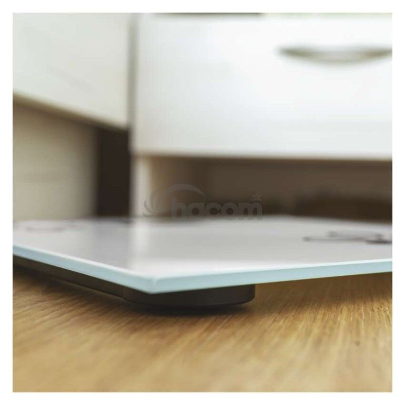 Elegantný slim design, maximálne zaťaženie 180 kg, vážiaca plocha z tvrdeného skla (6 mm).