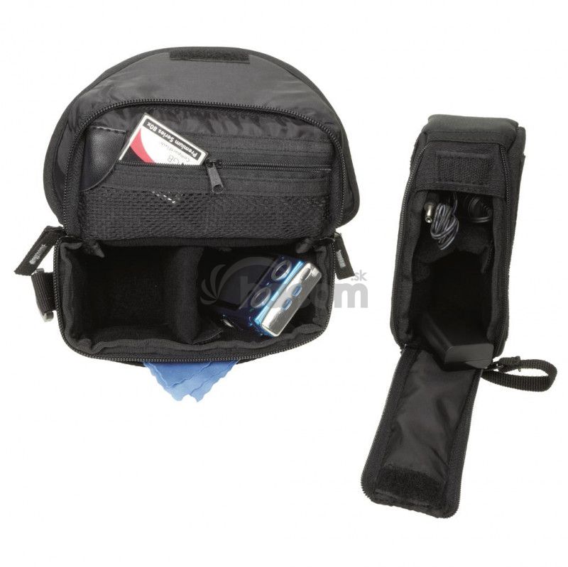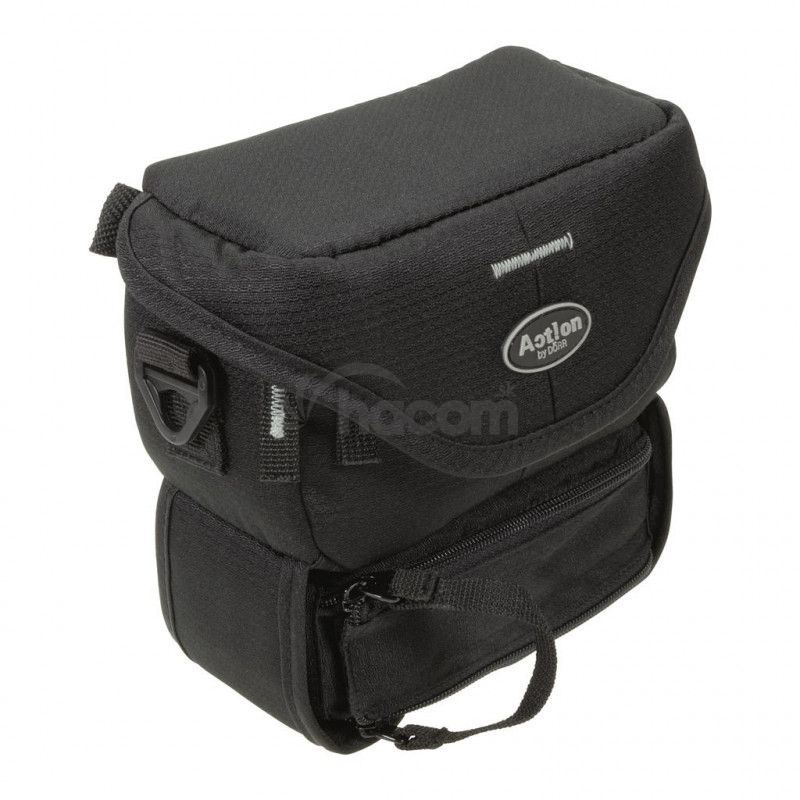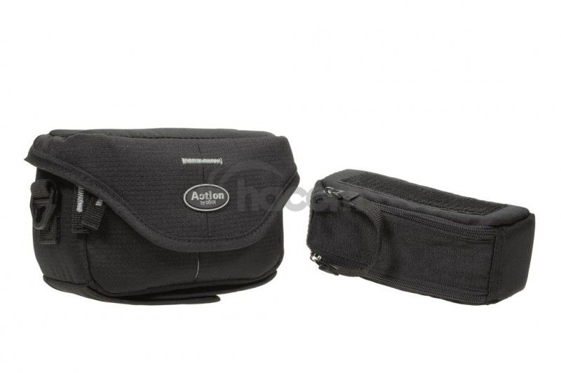 Taška hlavne pre menšie videokamery s remeňom cez rameno. Spodná odnímateľná taška na príslušenstvo. Horný prístup s odklápaním k telu a prekrytím predného vrecka, sieťované vnútorné vrecko, čierny interiér - mäkký proti poškriabaniu, vnútorné rozmery 15x8,5+5,5x5 cm, farba čierna. Rad ACTION Black vyniká kvalitným spracovaním a nadčasovým designom. Pri zachovaní veľmi priaznivej ceny je použitý príjemný čierny povrchový materiál s jemnou štruktúrou doplnený elegantnou šedou vsadkou.