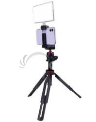 Stolný statív s guľovou SmartPhone hlavou a výsuvnou teleskopickou selfie tyčou - 6 sekcií, 5 pozícií nastavenia výšky nôh, pre mobily aj statívový závit, výklopné nohy alebo rukoväť, guľová hlava 20mm, maximálne zaťaženie 2kg, dve výšky 68 a 22cm, zložený , hmotnosť 300g, farba čierna.Parametre