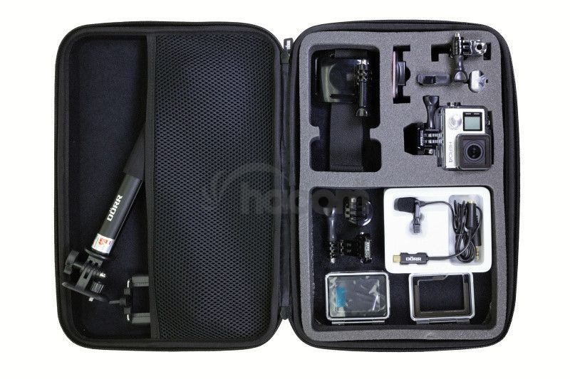 Škrupinové bezpečnostné púzdro s presne tvarovanou molitanovou výplňou - systém GoPro s možnosťou vloženia minikamier Hero - Hero4 a príslušenstva. Robustná konštrukcia púzdra s povrchovým materiálom odolným vode a špine, vodeodolný zips, mäkký interiér s odkladacím vreckom, karabína alebo ucho podľa veľkosti.Parametre