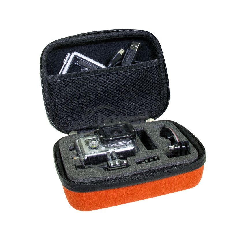 Škrupinové bezpečnostné púzdro s presne tvarovanou molitanovou výplňou - systém GoPro s možnosťou vloženia minikamier Hero - Hero4 a príslušenstva. Robustná konštrukcia púzdra s povrchovým materiálom odolným vode a špine, vodeodolný zips, mäkký interiér s odkladacím vreckom, karabína alebo ucho podľa veľkosti.Parametre