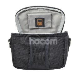 Moderná praktická fototaška pre minikameru alebo malý Zoom kompakt s príslušenstvom - vnútorné rozmery 13x9, 5x7cm, hmotnosť 185g. Rýchly prístup s odklápaním od tela, svetlý interiér s vreckom na drobné príslušenstvo, bočné otvorené a predné uzatvárateľné vrecko. Rad MOTION sú moderné farebné fototašky s veľkým výberom rozmerov, vyrobené z robustného materiálu D300 Polyester, polstrované ucho, vodeodolný zips, pogumované dno, kovové karabíny, remeň cez rameno, viac farebných variantov - čierna, modrá, vínová, hnedá a zelená.