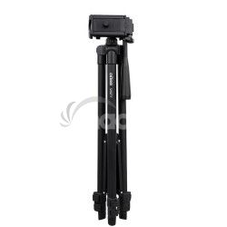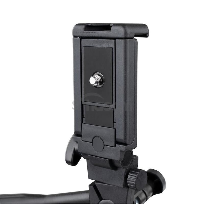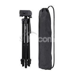 Ľahký hliníkový foto/video statív priamo použiteľný aj pre mobily, 3-smerná SmartPhone hlava so statívovým závitom, 3 segmenty nôh so svorkami, profil 17mm, zaťaženie maximálne 3kg, rozmery: zložený 41cm / výška 40,5-112cm, hmotnosť 465g, farba čierna, vrátane textilného obalu. Stredový stĺpik so vzperami pre vyššiu stabilitu, nastavenie výšky s aretáciou skrutkou, nohy zakončené gumou.Parametre