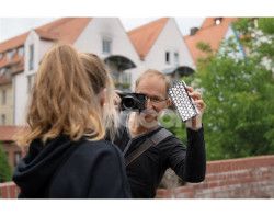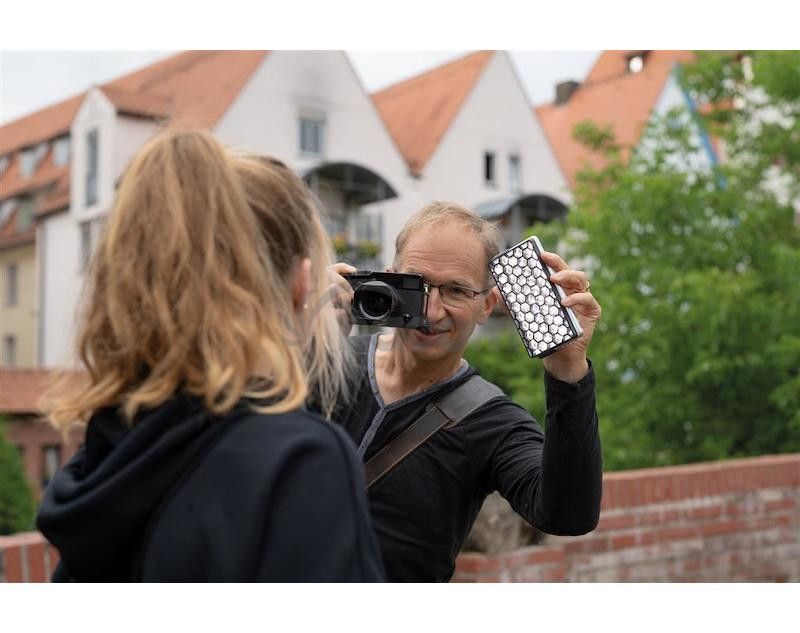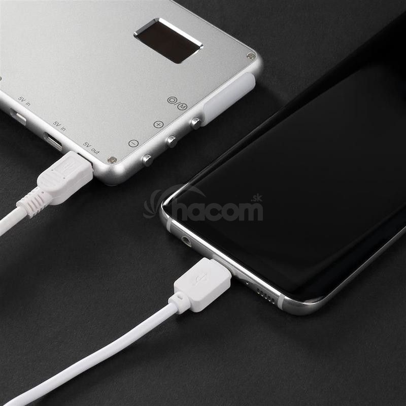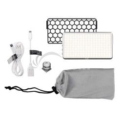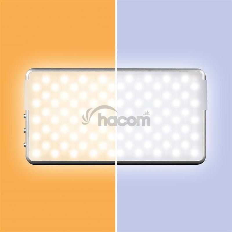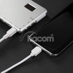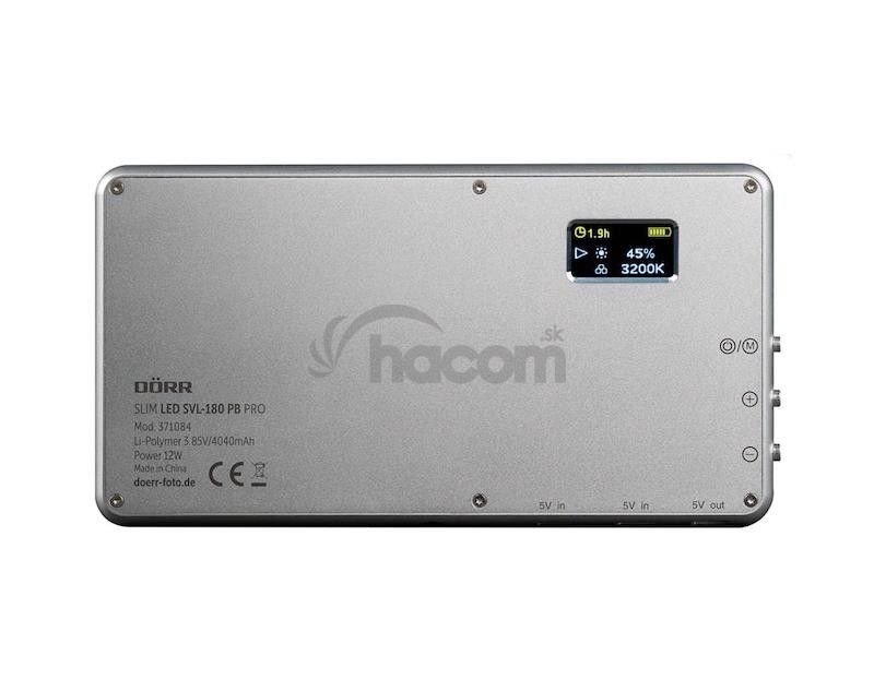 Profi SLIM videosvetlo s 180 BiColor LED v "SmartPhone" hliníkovom tele do ruky, sánok alebo na statív. Farebná teplota 3200-5600K, svetelný výkon 1000 lux/1m, regulácia intenzity, CRI > 96 Ra, LCD info, zabudovaný Li-Pol 4040, funkcia PowerBank, rozmery 150x80x10mm, hmotnosť 190g. Ideálne aj pre mobilné telefóny s uchytením pomocou SmartPhone adaptéra. Výkon LED 12W, prevádzka až 1,5h, nabíjanie cez micro USB alebo USB-C počas 2,5h, výstup mini USB 5V, kompletné informácie a nastavenia na LCD. Ideálne na zlepšenie kvality videozáznamu v horších svetelných podmienkach. Súčasťou dodávky sú difúzna a voštinová predsádka, kovové uchytenie na sánky blesku, nabíjací USB-C kábel, výstupný mini USB/USB kábel, textilné puzdro.