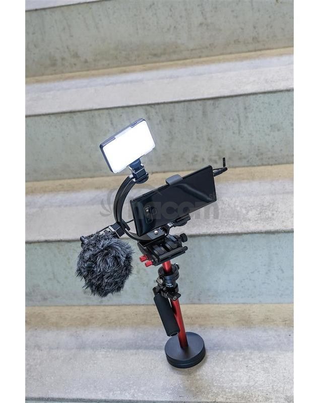 Veľmi malé a ľahké videosvetlo s 12 LED v kompaktnom tele do ruky, sánok alebo na statív. Farebná teplota 5600K, svetelný výkon 140 lux/1m, regulácia intenzity, CRI > 95 Ra, LED info o stave zabudovanej Li-Pol 1000mAh, nabíjanie cez micro USB, rozmery 85x75x15mm, hmotnosť 70g. Ideálne aj pre mobilné telefóny s uchytením pomocou SmartPhone adaptéra. Prevádzka 1-18h podľa nastavenia intenzity, nabíjania cez micro USB počas 2h. Ideálne na zlepšenie kvality videozáznamu v horších svetelných podmienkach. Súčasťou dodávky sú 3x difúzna predsádka - biela, modrá, oranžová, kovové uchytenie na sánky blesku, uchytenie do závitu pre statív, nabíjací micro USB kábel.