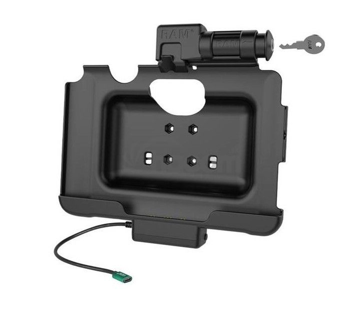 Dokovacia stanica RAM s kľúčovým zámkom USB-CTáto napájacia kolíska pre tablety Samsung Galaxy Tab Active4 Pro a Tab Active Pro bola navrhnutá tak, aby spĺňala požiadavky pracovníkov v teréne v rôznych aplikáciách vrátane dopravy, predaja v teréne, logistiky, výroby a mnohých ďalších. Možnosť napájania zariadenia je zabezpečená prostredníctvom pogo pinov a zariadenia môžete ľahko otáčať pre použitie v režime na výšku alebo na šírku. Pre zabezpečenie a zabránenie krádeži je táto napájaná kolíska vybavená zámkom na kľúč, ktorý je kompatibilný so skinom RAM alebo továrenským skinom zariadenia, rovnako ako s príslušenstvom GDS Hand-Stand a ramenným popruhom. Prístup k stylusu zostáva zachovaný, aj keď je zariadenie v doku.