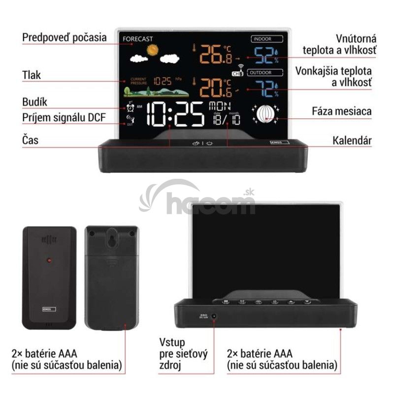 | napájanie stanice | 2× 1,5 V AAA (nie sú súčasťou balenia) |