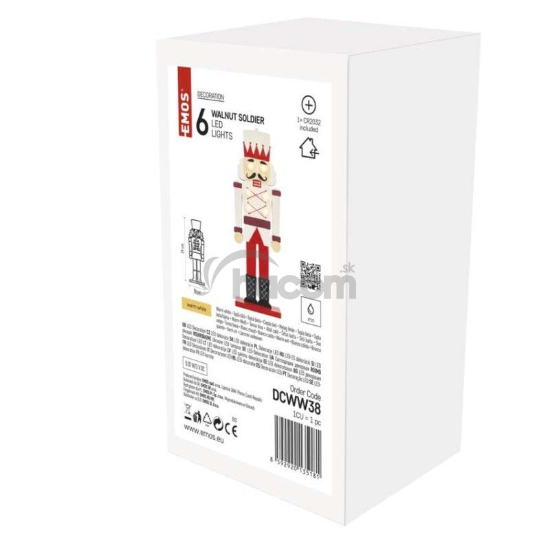 - Drevený luskáčik, 29 cm, 1× CR2032, vnútorný, teplá biela DCWW38