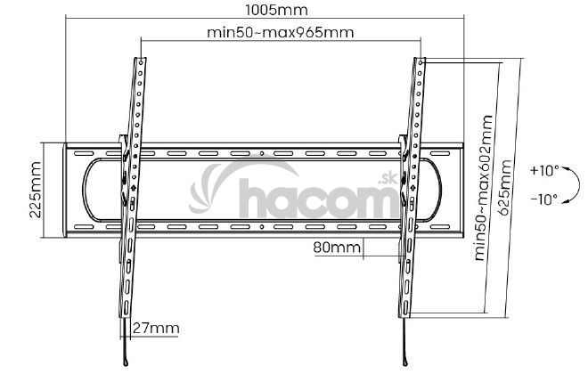 • Voľne sklopiteľná konštrukcia pre jednoduchú zmenu náklonu TV v uhle +10°~-10°