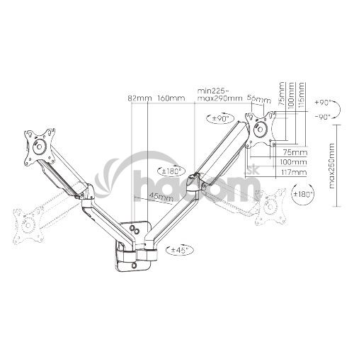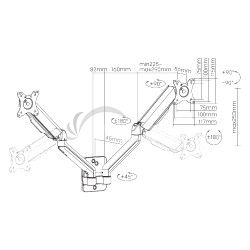 Vďaka odolnej oceľovej konštrukcii poskytuje stabilnú podporu pre dva monitory s uhlopriečkou 17" až 32" a hmotnosťou až 9 kg na rameno. Flexibilná konštrukcia na dostatočné nastavenie výšky a pozorovacích uhlov s možnosťou nastavenia orientácie monitora na výšku alebo na šírku.